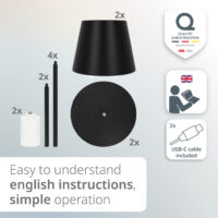 The powerful 2,600 mAh battery provides up to 12 hours of light with a charging time of only 2.5-3 hours. USB-C rechargeable, you can take the lamp anywhere – ideal for long summer evenings or spontaneous outdoor activities.