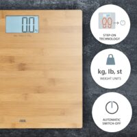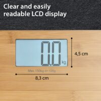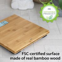 - Weighing surface: 15 mm strong certified genuine bamboo