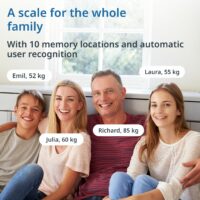 • Smart memory function: With 10 memory slots and automatic user recognition, these scales are ideal for the whole family. Everyone can track their individual progress and work towards their health goals