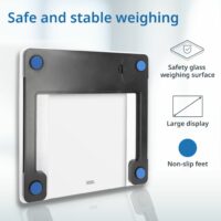 • User-friendly design: Benefit from non-slip feet, a sturdy weighing surface made of safety glass and a large display that makes it easy to read your measurements