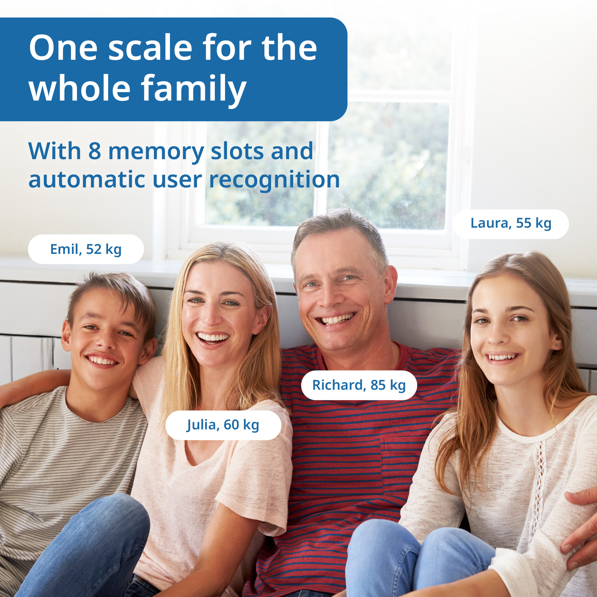 • Perfect for multi-person households: the bathroom scales automatically recognise up to 8 users and store individual values such as age, height and gender for accurate measurement results.