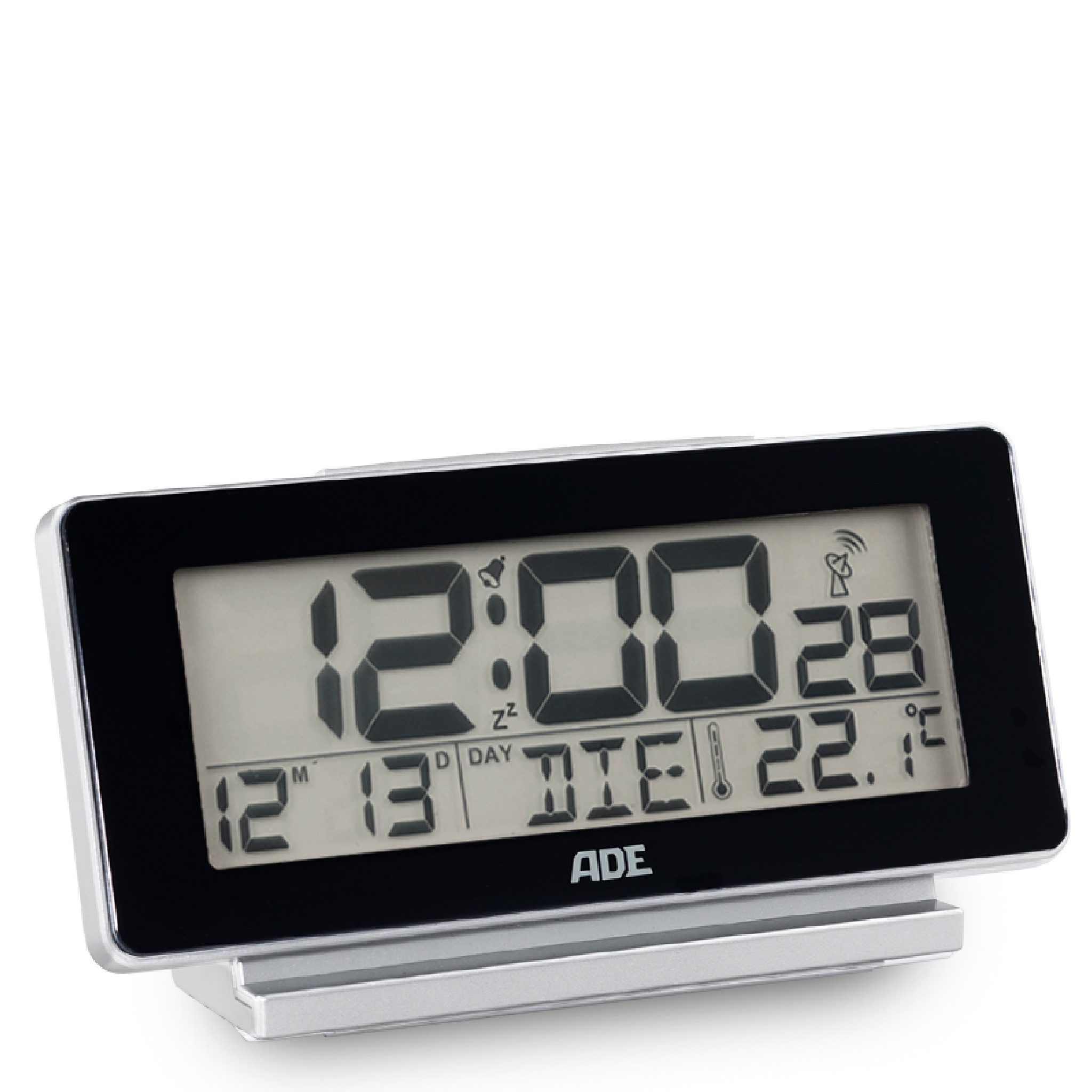 Easy to Find Even While Asleep: The snooze button on the ADE CK 1703-2 digital radio-controlled clock is extra large, increasing accuracy for those who like to snooze a bit longer upon waking. For an overview of the new day, the radio alarm clock also displays indoor temperature (in °C and °F), as well as the date and day in seven languages (DE, EN, ES, FR, IT, NL, DA). The time signal of the table clock is received via DCF, so the switch between summer and winter time is automatic. Very convenient: The display lighting on the clear LCD screen can be manually turned on with a simple press of a button. This saves energy compared to continuous lighting and does not brighten the room at night, ensuring a more pleasant sleep.
