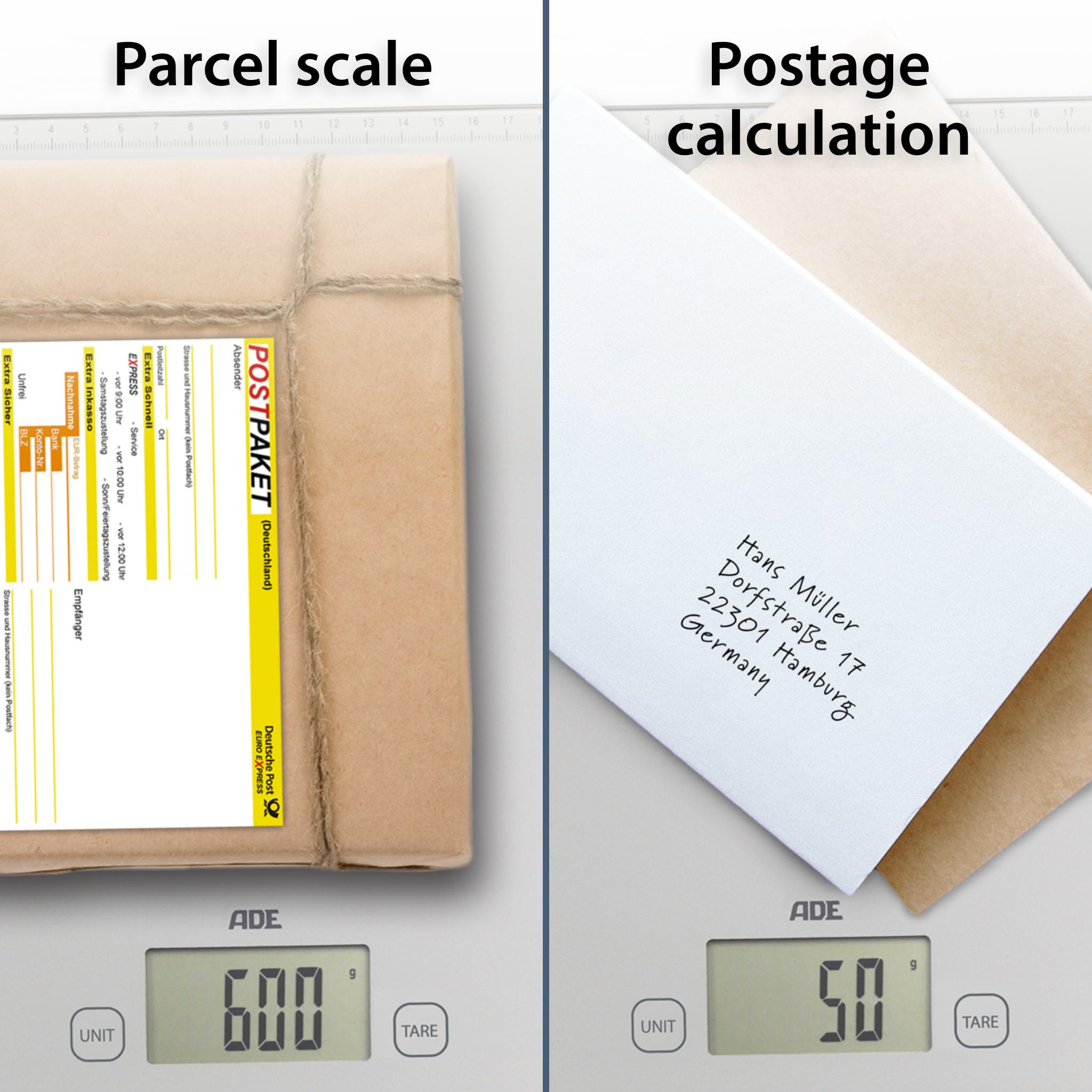 - Two-sided measuring tape for measuring of packages, letters etc.