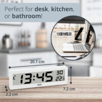 • With its compact dimensions of 21.6 x 7.2 x 2.2 cm and slim design, the clock fits easily into any room concept and can be used both as a table clock and as a wall clock
