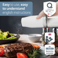 The scope of delivery includes 6 AAA batteries so that you can start seasoning immediately. Whether in the kitchen at home or when cooking outdoors, our electric salt and pepper mill is the ideal companion for any cooking enthusiast. Get this indispensable kitchen tool and add the finishing touches to your dishes!