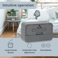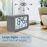 Maximum clarity, minimal effort. Our digital alarm clock guarantees optimal readability at any time of the day. With its large, clear digits, you always have the exact time in view, no matter from which angle you look at it. Never again will you oversleep or miss important appointments due to poor visibility.