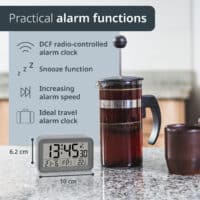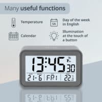 • All information at a glance: In addition to the exact time, the digital alarm clock, thanks to the DCF radio signal, also offers temperature display, day of the week display, and a calendar.