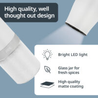 The elegant and durable design made of robust ABS plastic and a glass container gives your kitchen a modern touch and keeps your spices fresh for a long time. This electric grinder is not only a practical, but also a stylish kitchen gadget.