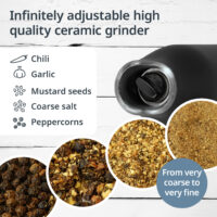 The high-quality ceramic grinder is infinitely adjustable and allows you to precisely set the grinding thickness from very fine to very coarse. Whether you need finely ground salt for your soup or coarsely ground pepper for your steak, this grinder always delivers the desired result.
