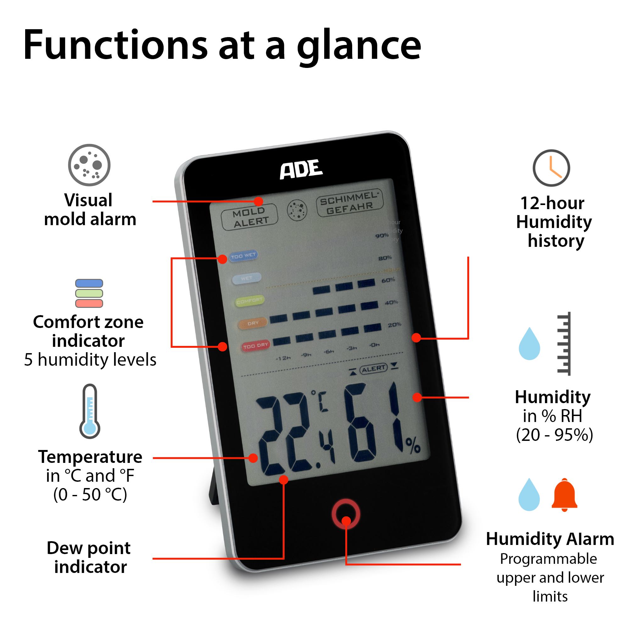 - Alarm for High Air Humidity with programmable upper and lower limits