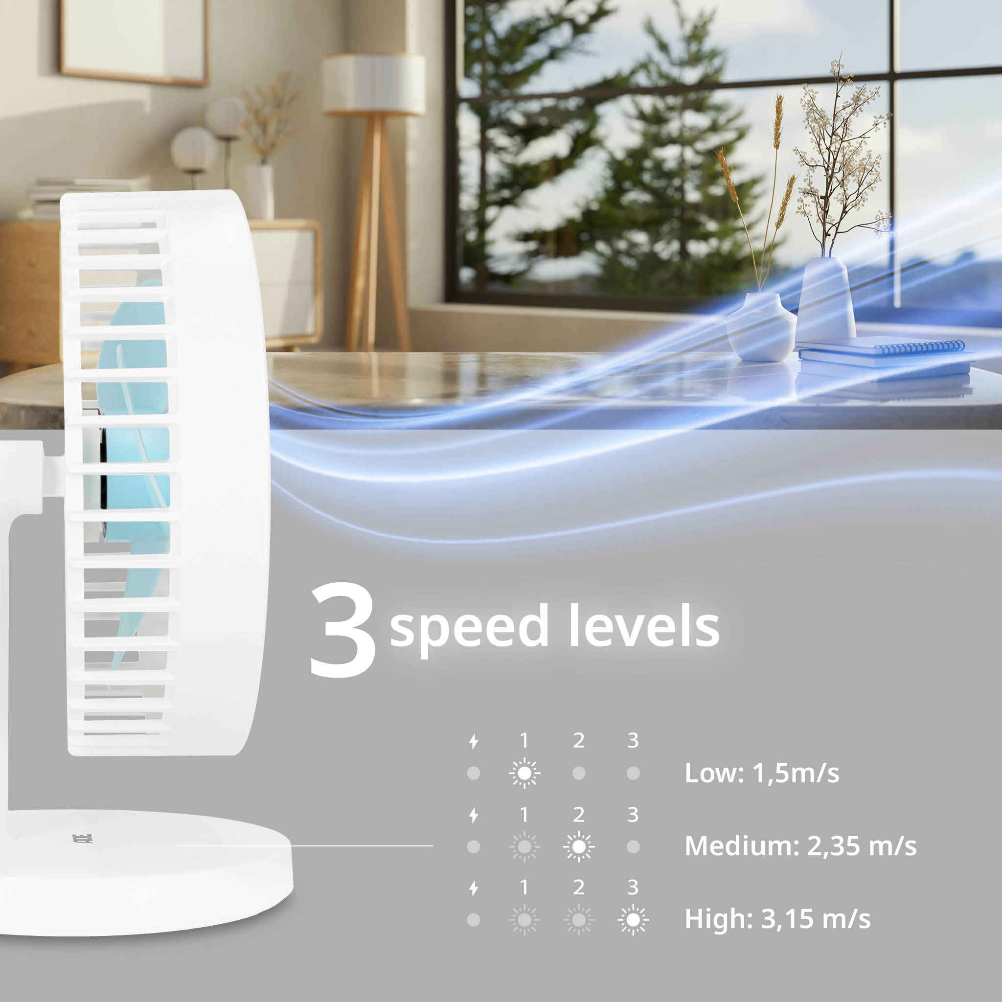 - 3 speeds: Choose from 3 power levels (1.5m/s, 2.35m/s, 3.15m/s) using the control button for the perfect breeze. The 180° rotatable head allows for precise airflow direction, ensuring optimal cooling at all times.