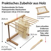 - Platzsparender Nudeltrockner aus Holz mit faltbarem Stecksystem;